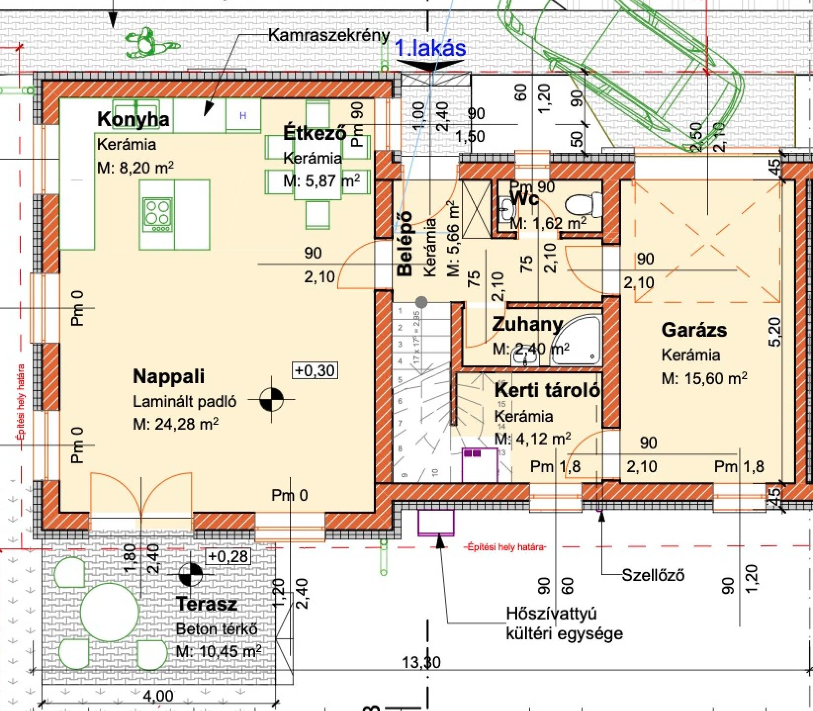 Bruttó 186,2 m2, nettó 140 m2 hasznos alapterületű + 10,45 m2 terasszal épülő új építésű családi házak kerttel.